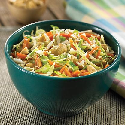 - Toss coleslaw, carrots and green onions in a large serving bowl.
