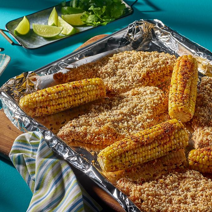 Sheet Pan Crispy Adobo Chicken and Roasted Corn