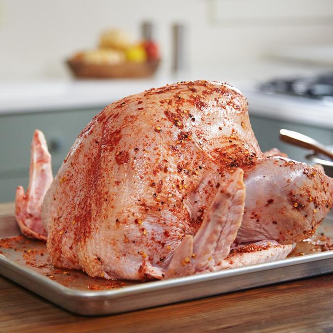 - Rub seasoning on turkey.