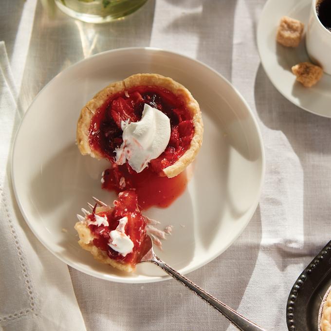 - While mixture macerates, place empty tart shells onto sheet pans and bake for 10 to 12 minutes. Remove and allow shells to cool.