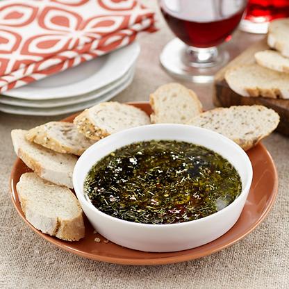 - Combine oil, basil, garlic, oregano and crushed red pepper in a small bowl and stir to combine.