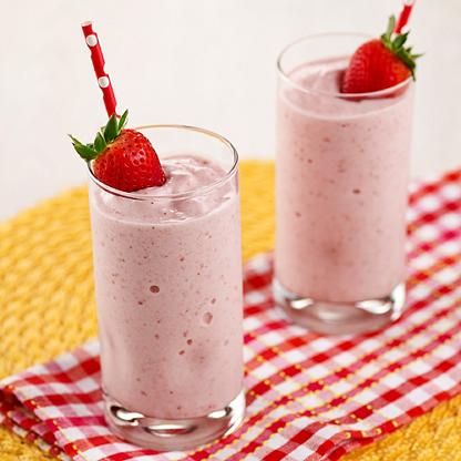 - Combine strawberries, nectar, milk, sparkling water and banana in a blender or food processor bowl.