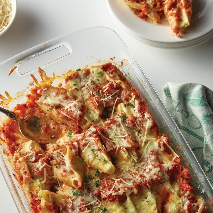 - Cook jumbo shells according to package directions. Drain and set aside.