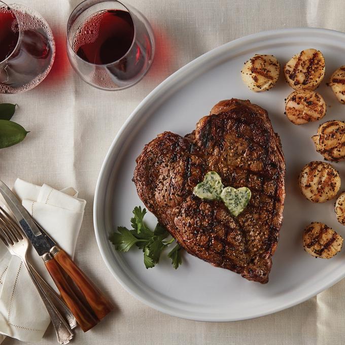Sweetheart Steak and Scallops with Greek Chimichurri Butter