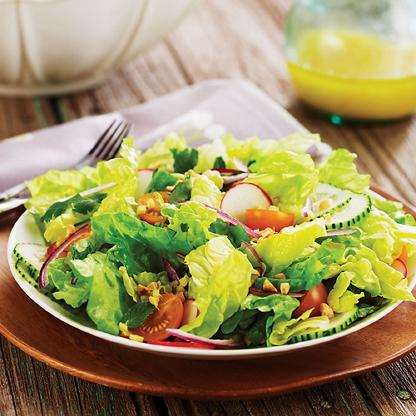 - Before serving, add vinaigrette to salad and toss. Sprinkle with peanuts if desired.