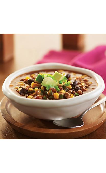 - Stir beans and corn into chili; add meat substitute. Return to a boil.