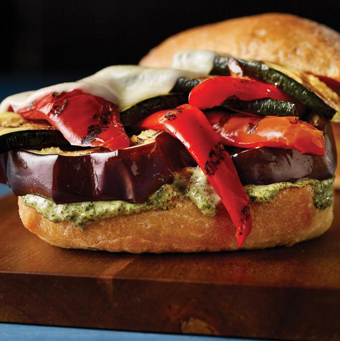 - To build sandwiches, spread a generous amount of Roasted Kale Aioli on cut sides of rolls. Stack eggplant, zucchini, and bell pepper on bottom half of rolls. Add cheese and top portions of ciabatta.