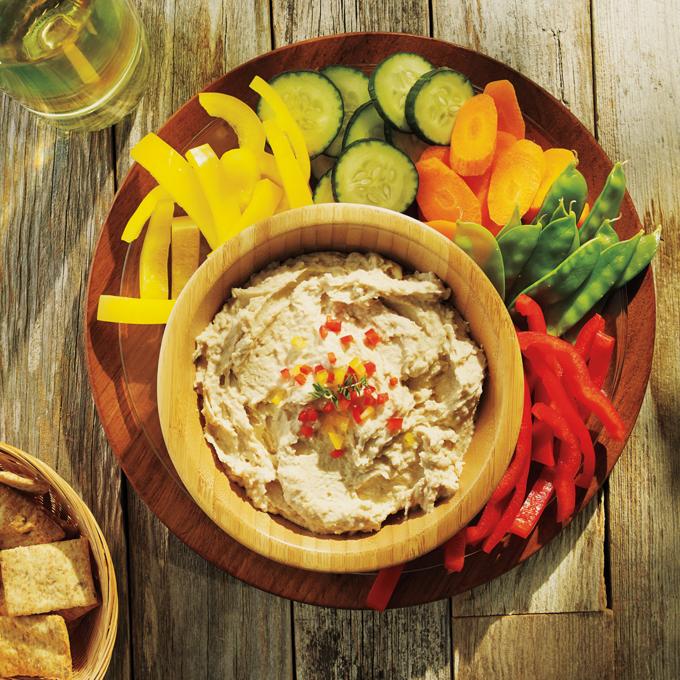 - In a food processor, combine olive oil, garlic, beans, lemon and tahini; pulse until smooth, remove and pour into a bowl.