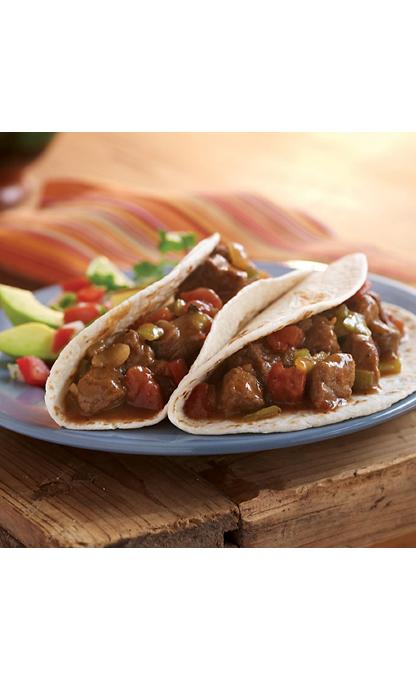 - Simmer 1 1/2 hours or until beef is tender (6 hours for slow cooker). Serve in tortillas with desired toppings.
