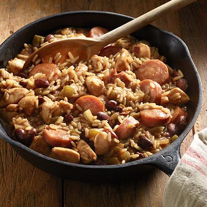 - Stir red beans and rice mix and 3 cups water into chicken and sausage mixture; bring to a boil.