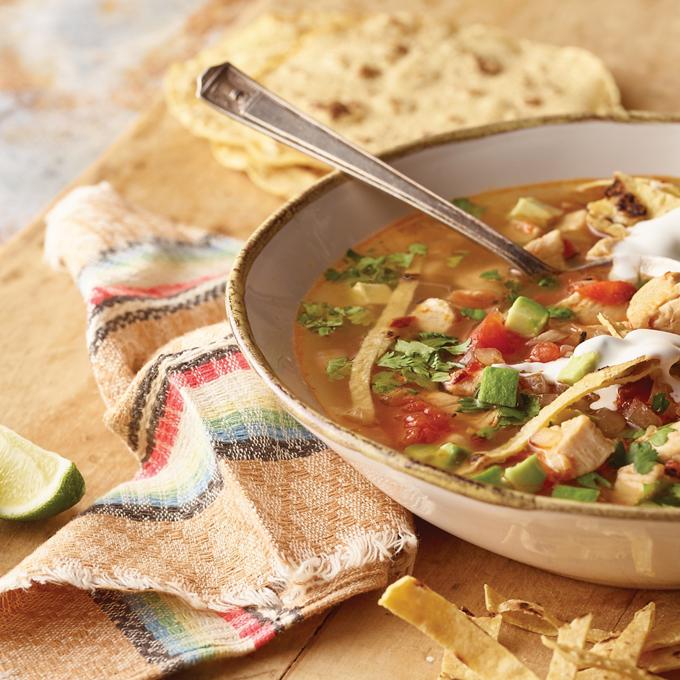 - Chef’s tip: Add diced avocado and a drizzle of Mexican crema just before serving. Also, for a homemade soup experience try using our "Grilled Chicken Stock" recipe.