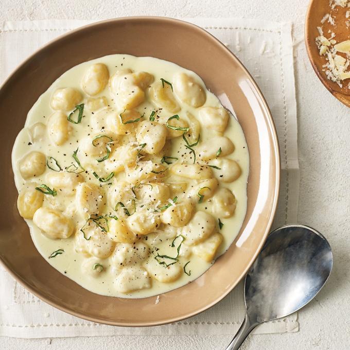 - Bring a large pot of water to a boil, add in gnocchi and cook according to package instructions. Drain and set aside.