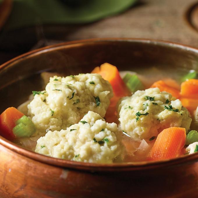 - Chef's Note: These are dumplings I use whenever I am looking to make a hearty chicken soup. You can also poach these in any hot stock for a quick hearty meal.