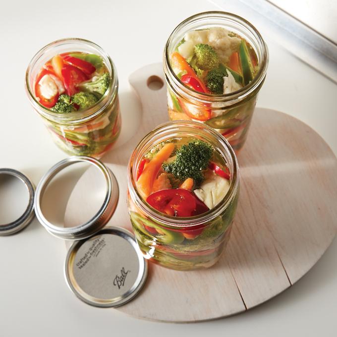 - 1 cup Fresh broccoli florets, cut into smaller pieces to fit into jars as needed