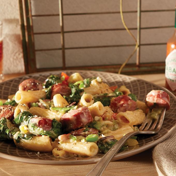 - Chef's Note: For a slightly spicier version of this dish, try the H-E-B Creamy Poblano Pasta Sauce and a shake of Tabasco hot sauce.