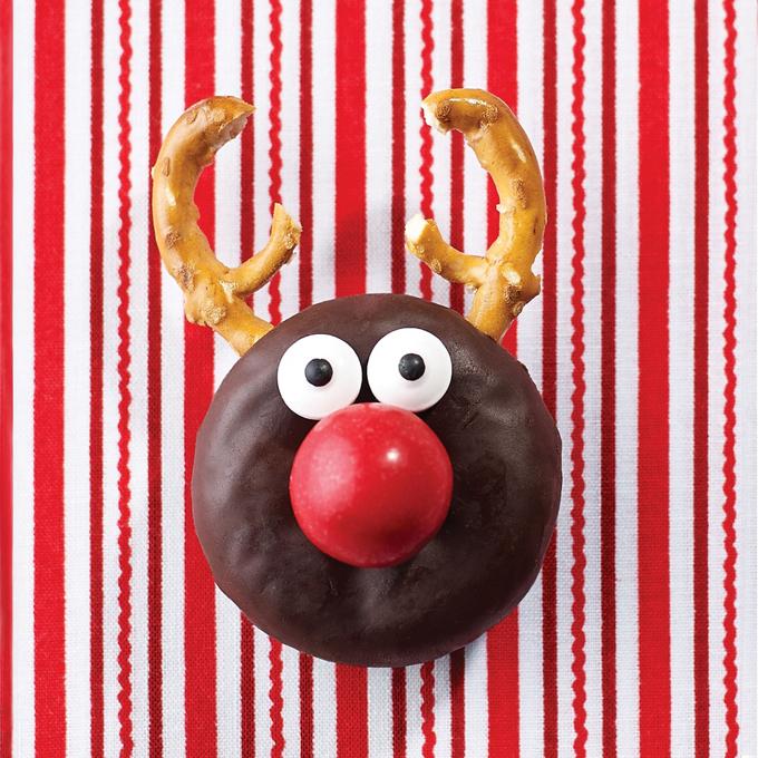 - Once nose is in place, use white and black icing to draw eyes and any other features you want your reindeer to have. Use pretzels for antlers. Dress these up anyway you like. It's a great way to let kids be creative. Serve immediately.