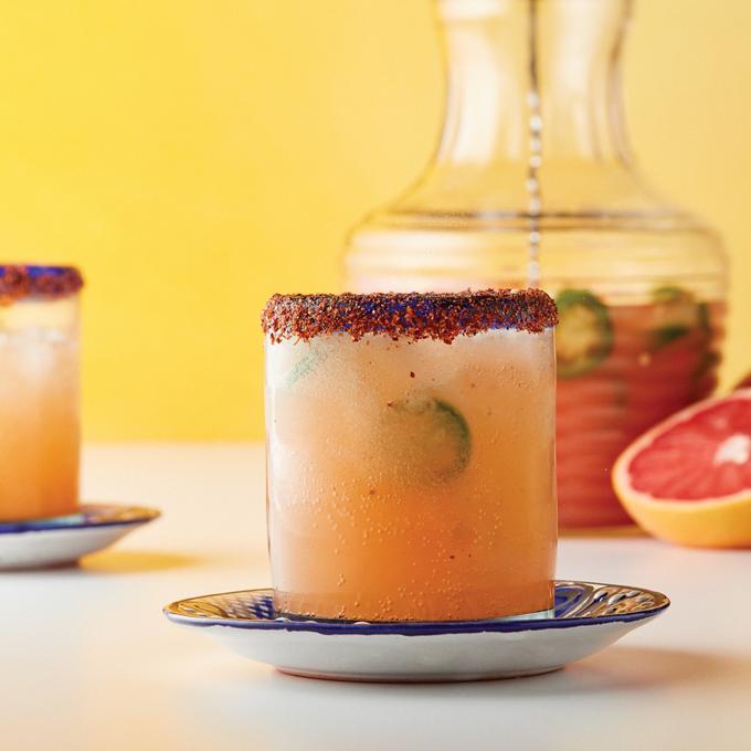 1. Add ice, grapefruit juice, lime juice, jalapeño, and simple syrup in a shaker. Shake well.