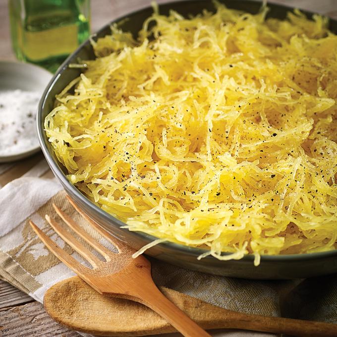 - Preheat oven to 400˚F. Cut spaghetti squash in half from top to bottom (lengthwise).