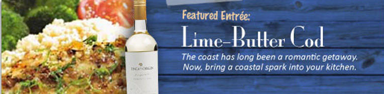 Seafood Menu Entrée: Lime-Butter Cod Dessert: Hot Fudge Cake with Berries Wine: Finca El Origen Torrontes' Wine |