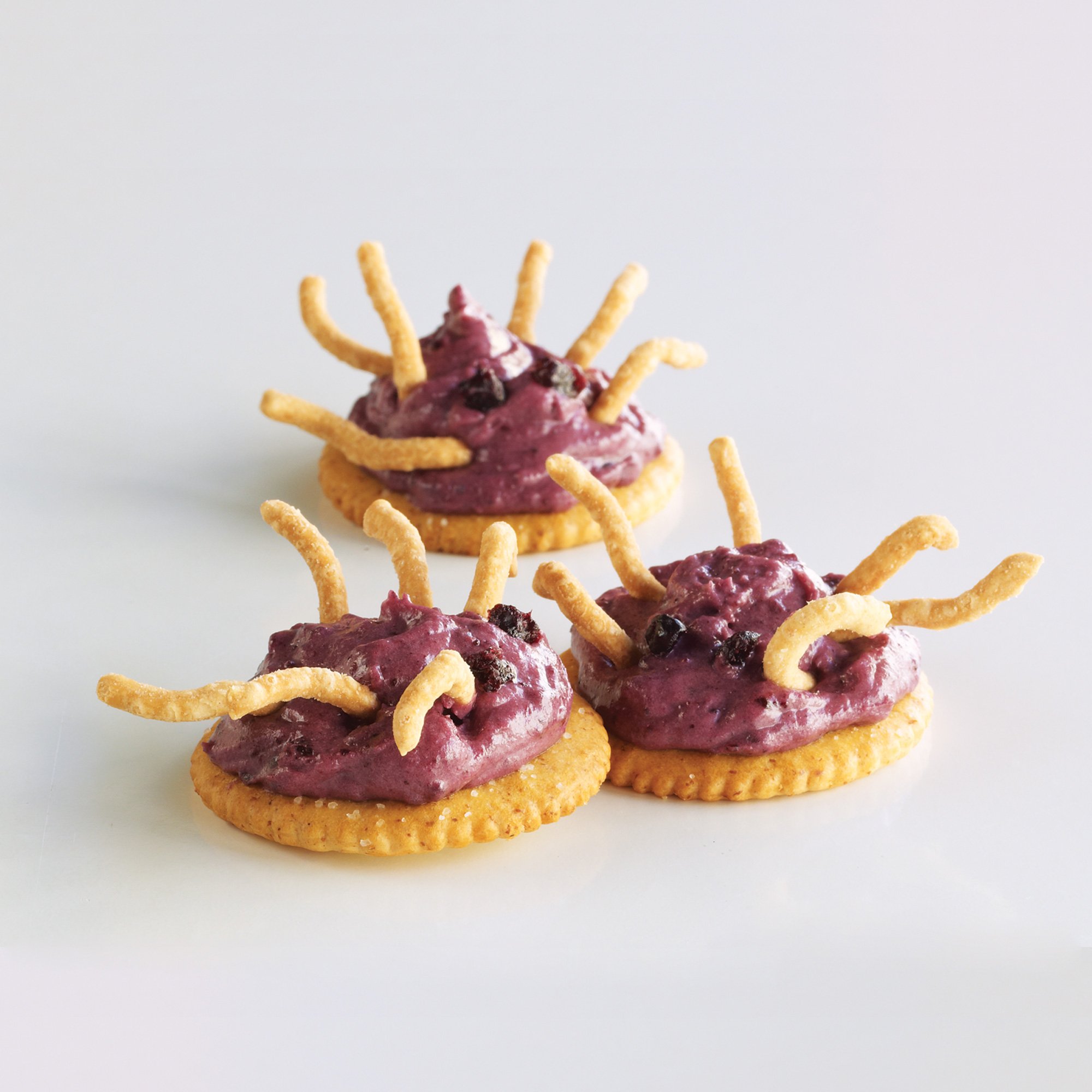 Spooky veggies for your kiddos to grab on to! To keep the almond attached, use a spoon to scrape a groove into one end of the carrots (baby carrots or full-sized). Place a slivered almond into groove and dunk into a bowl of low-fat ranch dip.